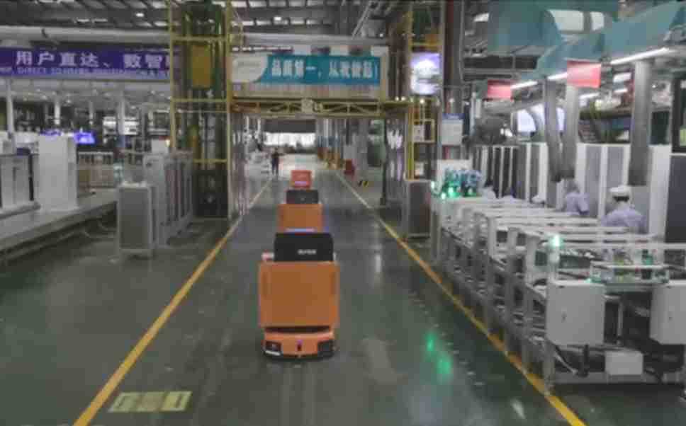 为车载冰箱物流配送打造的智能解决方案,,包含产中物流通过潜伏举升AMR搬运至线边,,,,产后成品物流智能仓储,,,,流程包含产中物流智能齐套入库,,线边安灯叫料AMR智能配送至线边,,成品入库、、、、出库,,,,通过无人堆高车机器人,,智能仓储管理替代人工作业管理,,,,实现更高存储、、、、更高效率、、、更具柔性化的解决方案。。。